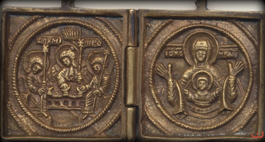 Двухстворчатый складень. «Ветхозаветная Троица и Богородица Знамение»