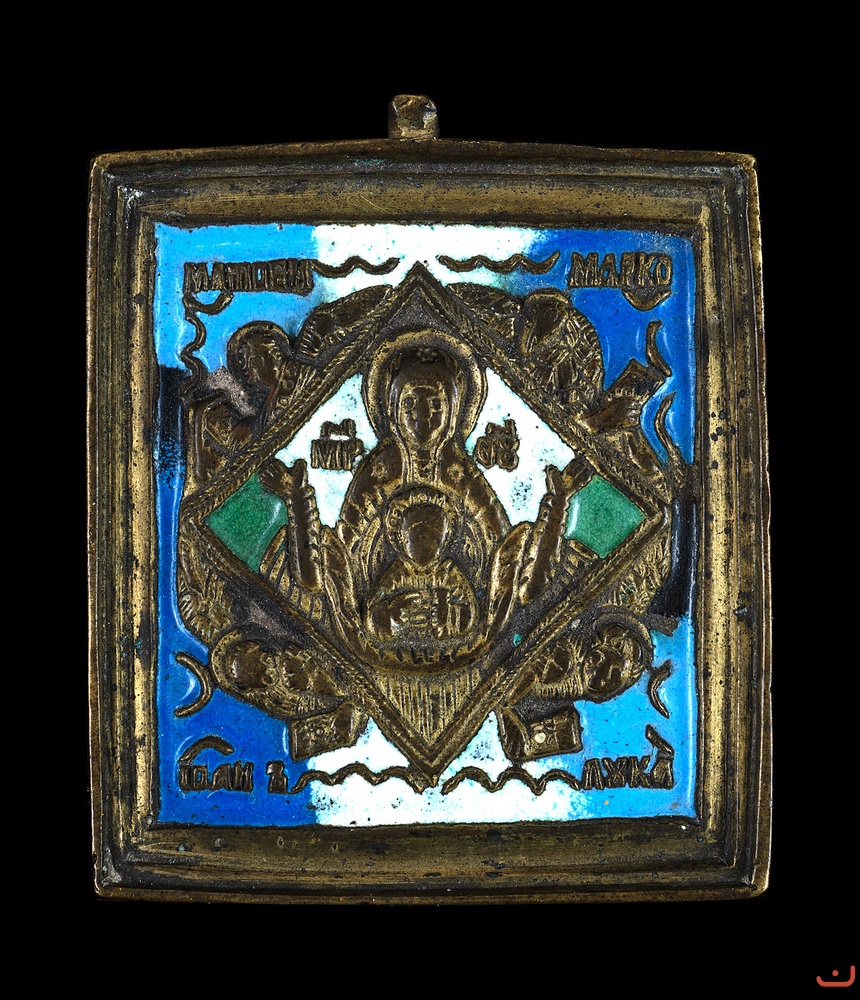 Медь, литье, перегородчатая эмаль, 4 цвета (белая, голубая, голубая, зеленая).