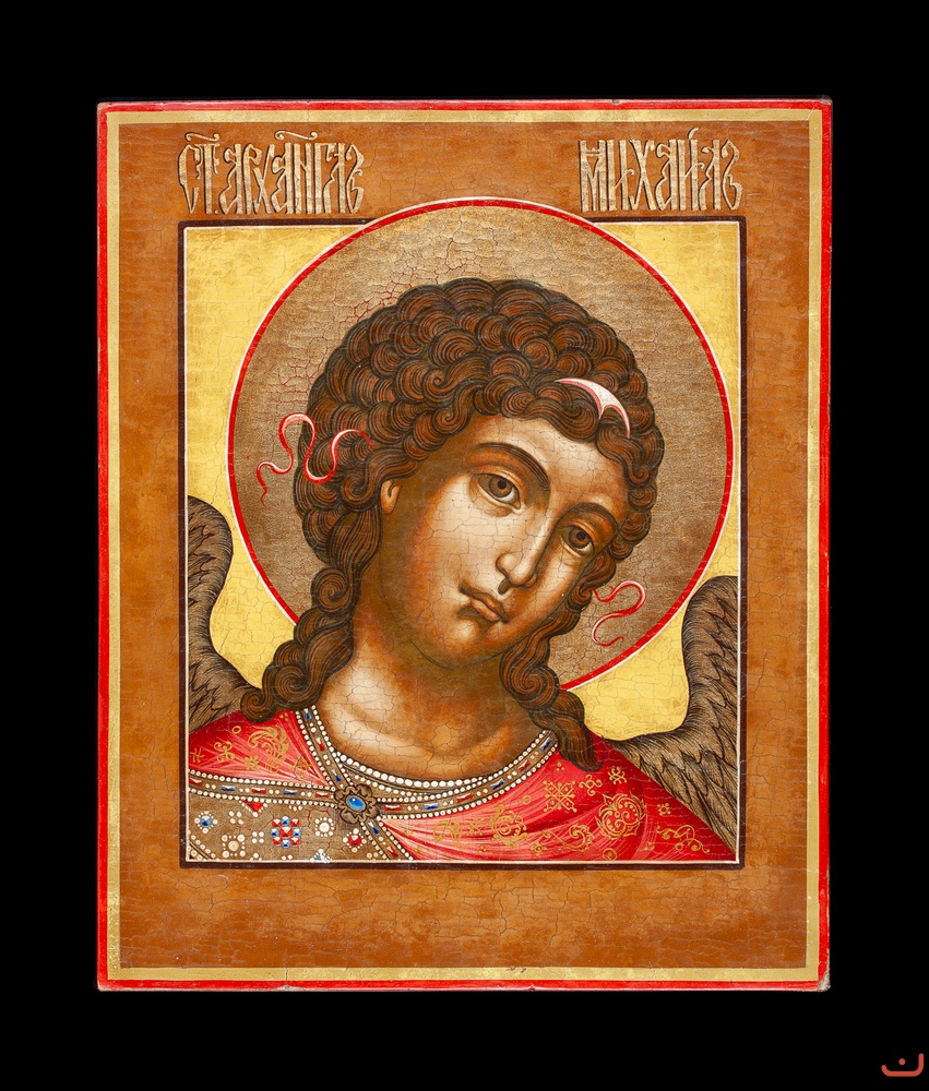 These three icons form a rare, and probably completely unique iconographic composition. If the classic ordinary Deesis is an image of an adult Christ in the Center and John the Apostle and the Mother of God on the sides of the icon of Christ. These are shoulder-length images. Here we see images of the young child Christ Emmanuel in the center and Archangels Michael and Gabriel on the sides of the icon of Emmanuel. In addition, these are shoulder-length images, where the faces occupy the entire plane of the icon.