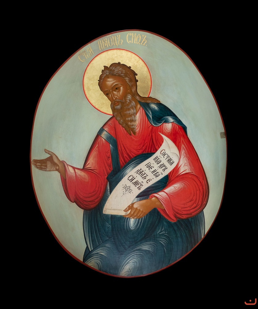 Description: Prophet Seth was the 3rd son of Adam and Eve. This painting demonstrates the top class of the Palekh icon painting school. This is the standard of the Palekh icon specifically for the upper class and the court environment. This is the rarest icon. It is very difficult to meet the Prophet Seth in Russian icon painting, especially in such an exquisite performance.