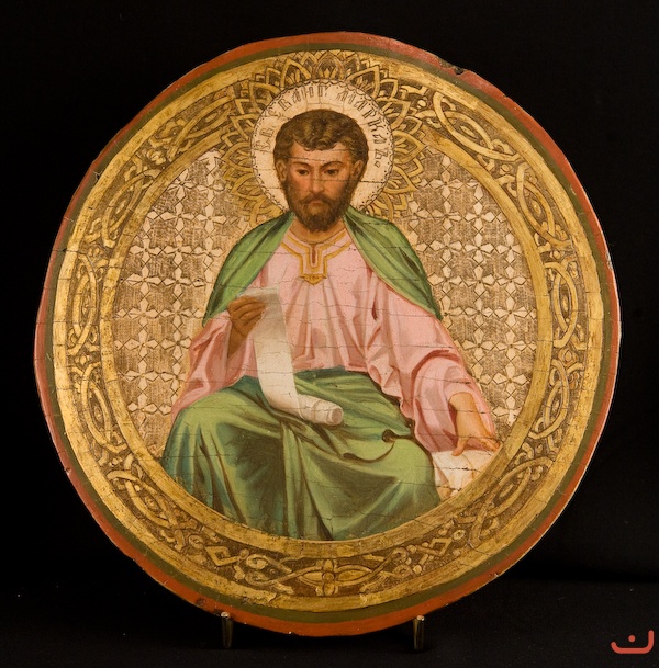 Technique & Material: round-shaped board, gesso, tempera, engraving, mixed manner of painting, drying oil. Description: An iconography of this icon features a picturesque and realistic manner, - a so-called "academic" style, popular in Moscow and Palekh in the 19th century.