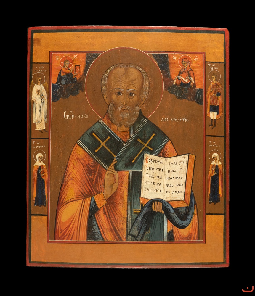 Description: On the fields of this icon, we can see upcoming saints, which indicates the pre-ordered nature of the icon. On the fields we can see: the Guardian Angel, Saint Matrona, St. George the Victorious, and Saint Ksenia.