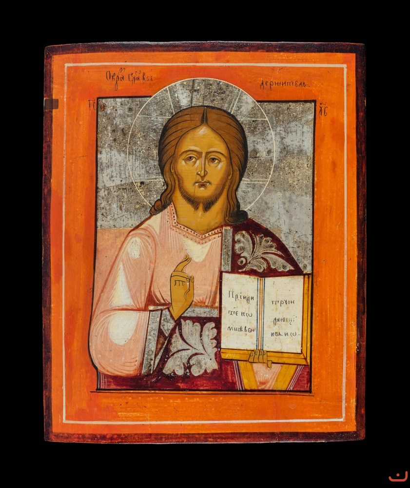 Technique & Material: Board, tempera, silver leaf, drying oil.