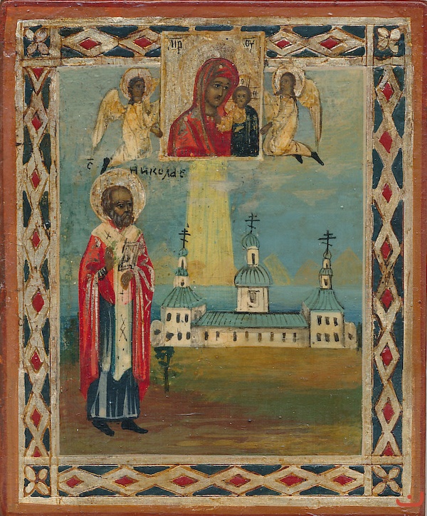 "St. Nicholas the Miracle-worker on a foreground of a monastery" 19th century. Central Russia(?)