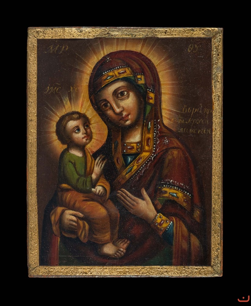 Description: This is very sweet and warm image of the Mother of God. High class of painting in style of the second half of the 18th century. The beautiful eyes of the Mother of God draw attention. Her gaze is like a mirror of the Soul of the Most Holy.