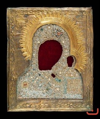 Description: Oklad - a precious riza to the ancient image of the Mother of God of Kazan.
