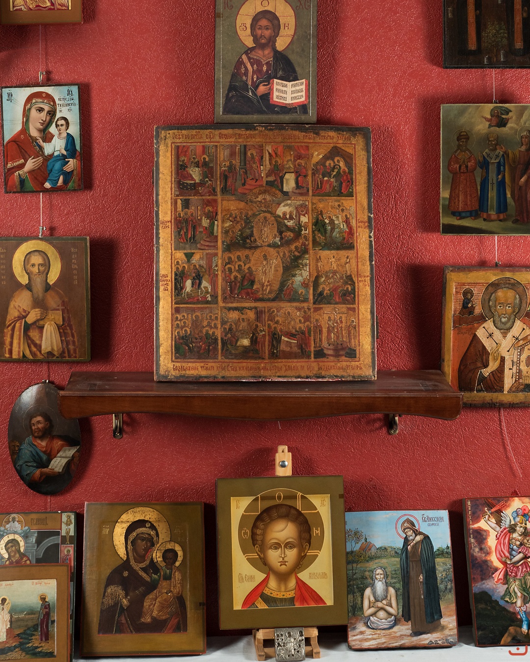 This icon is Ideal as a single icon in the house and as centre of the collection, home iconostasis.Although only one this icon can replace the whole iconostasis, due to the fact that almost all the Gospel narrations are presented in it.