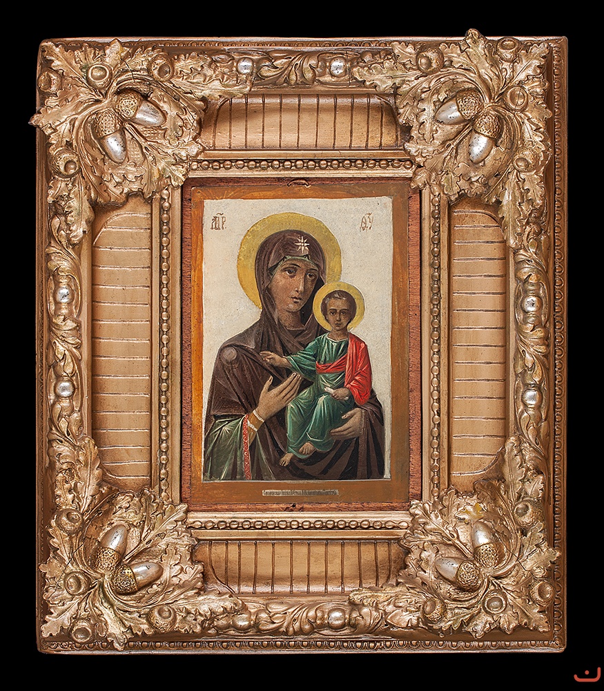 Size: 23 x 15,5 cm. Size in frame (oklad): Frame (oklad): artistic woodcarving, gesso, thick gilding with the gold leaf.