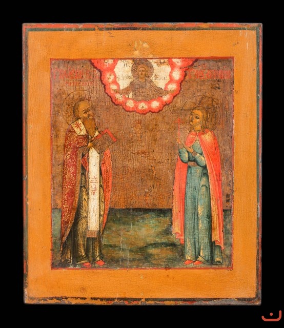 Description: Iconography of the icons is stylistically intersects with famous Stroganov icon painting school. The features of this icon (and the Stroganov icon painting school as well):