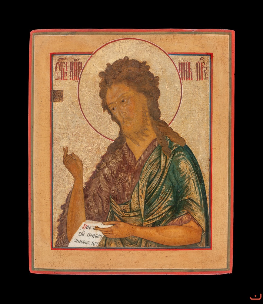 This icon was cleared from the darkened drying oil. The rectangular fragment was left on the icon field.