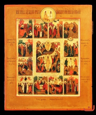 12 great liturgical feasts with Resurrection and Descent into Hell of Jesus Christ and the Trinity.