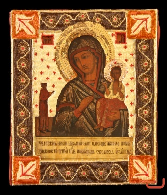 Oklad (mounting) : Sewing beads on velvet in the technique of the "Golden sewing ."