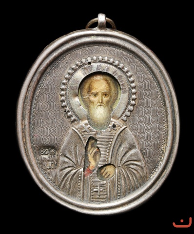 "St. Sergius of Radonezh in a silver oklad (mounting). "Panagia""