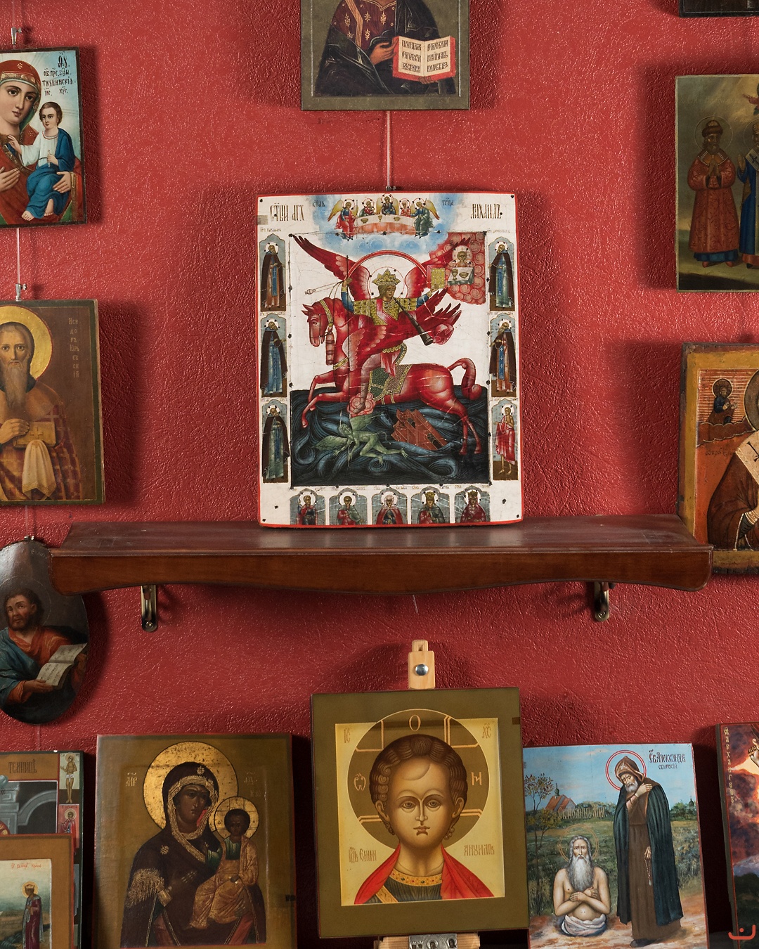 The plot is described in more details in the catalogue "Icons from private assemblies. Russian icon painting of the 14th - early 20th centuries / Catalogue of the exhibition in Central Museum of Ancient Russian Culture and Art of Rublev". "Iconography of the Archangel Michael as the Horseman of the Apocalypse (Ch. 8, 10) with numerous allusions to the texts of the Revelation of John the Theologian appears only in the second half of the 17th century in connection with the church reform, which gave rise in society to a keen sense of the “near end” of the world and experiences of the end times. The appearance of interpretations on the book Apocalypse contributed to the creation of new iconographic plots, including "Archangel Michael - Governor of the Formidable Forces", where "prince of Apocalypse" appears at the moment of his duel with the devil - a decisive eschatological battle against evil. In the Old Believer environment, this plot acquired an incredibly wide distribution, especially in the 18th and in the first half of the 19th century." (the author of the description is I.A. Shalina). *