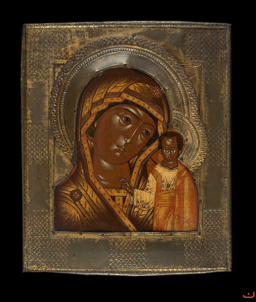 Basma harmoniously complements the icon. Basma was completely covered with gilding, which was partially preserved.